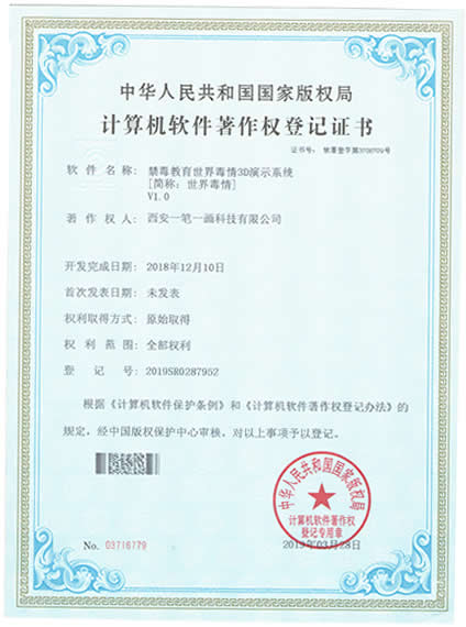 西安一筆一畫科技有限公司擁有《3C管理體系認證》|《3A信用等級》|《展館雙甲資質(zhì)》《招投標證件》|《展覽業(yè)10大影響力品牌》|《環(huán)藝雙甲資質(zhì)》|《禁毒教育拒毒心理測試系統(tǒng)軟著》|《飛奪瀘定橋歷史重現(xiàn)虛擬體驗軟件軟著》|《禁毒教育世界毒情3D演示系統(tǒng)軟著》等等,是您可以信賴的展廳教育基地設(shè)計施工企業(yè)!